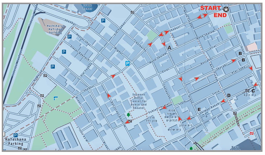 Public transport: Enter “Shabazi St.” into Moovit. The bus stop is a bit further along Shabazi St. than its intersection with Pines St. From the Shalom Towers it is about a 540-meter/ 5-minute walk to the beginning of the walk. The closest light rail is Elifelet Light Rail Station which is about a 10-minute walk to the beginning of the walk.
